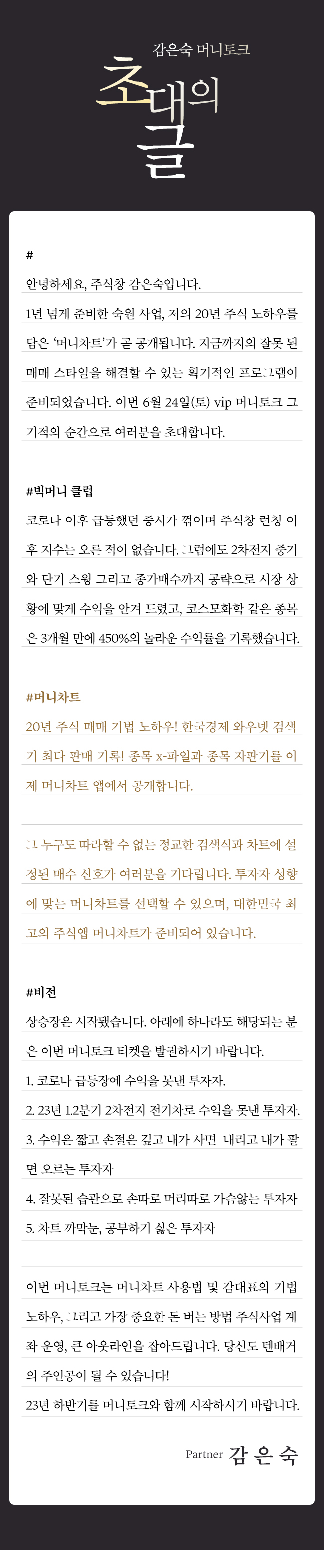 감은숙 머니토크 VIP 강연회 모집