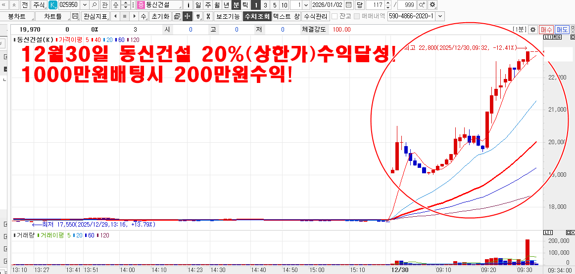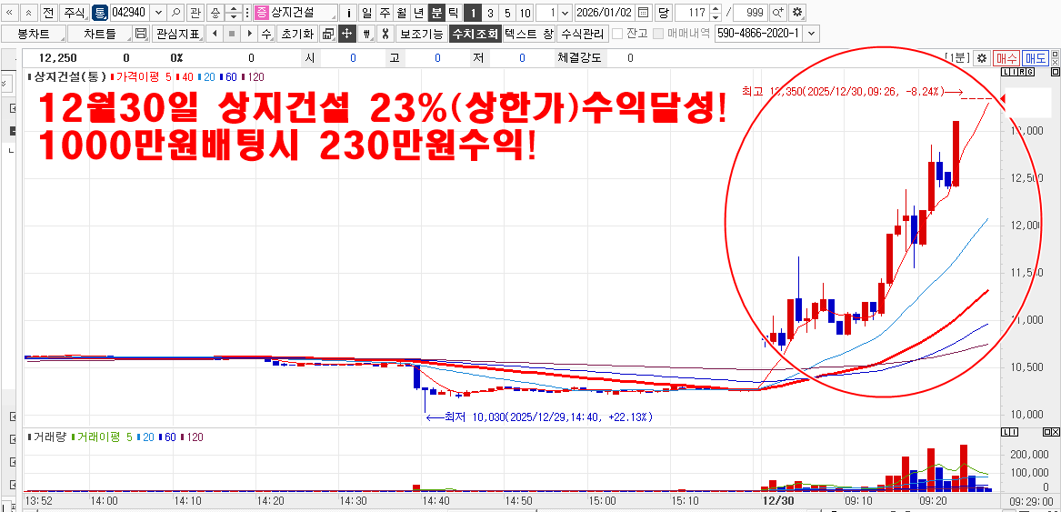 12월5일 일성건설28%이상수익달성! 상한가수익!