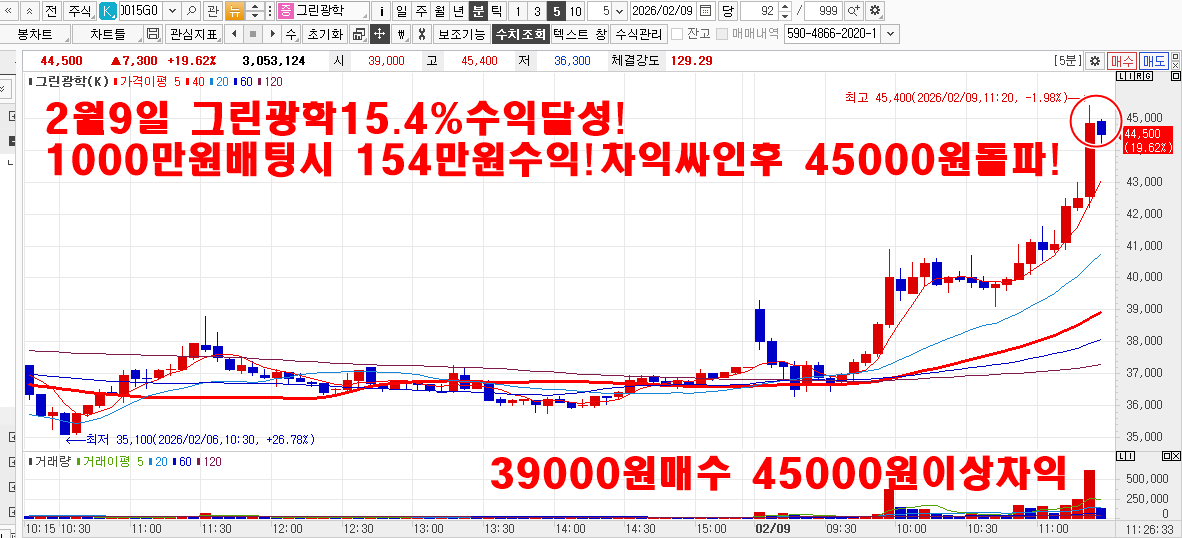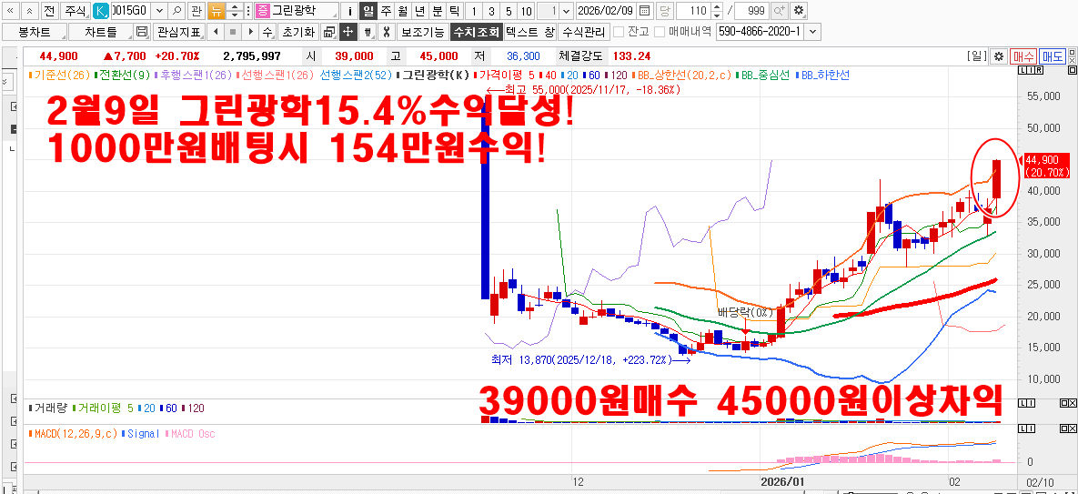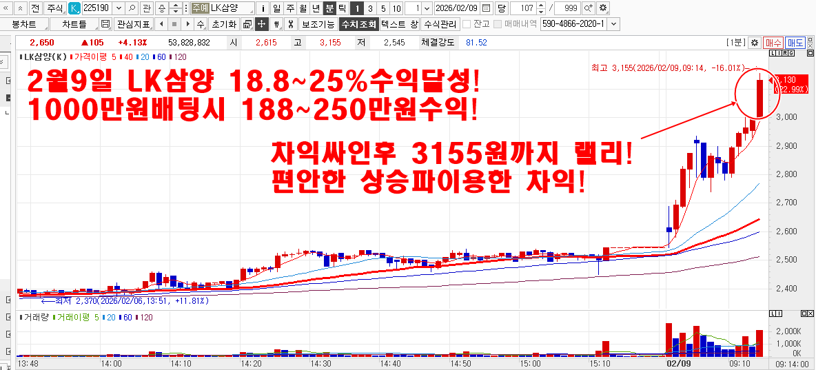 2월9일 LK삼양18.8~25% 그린광학15.4%