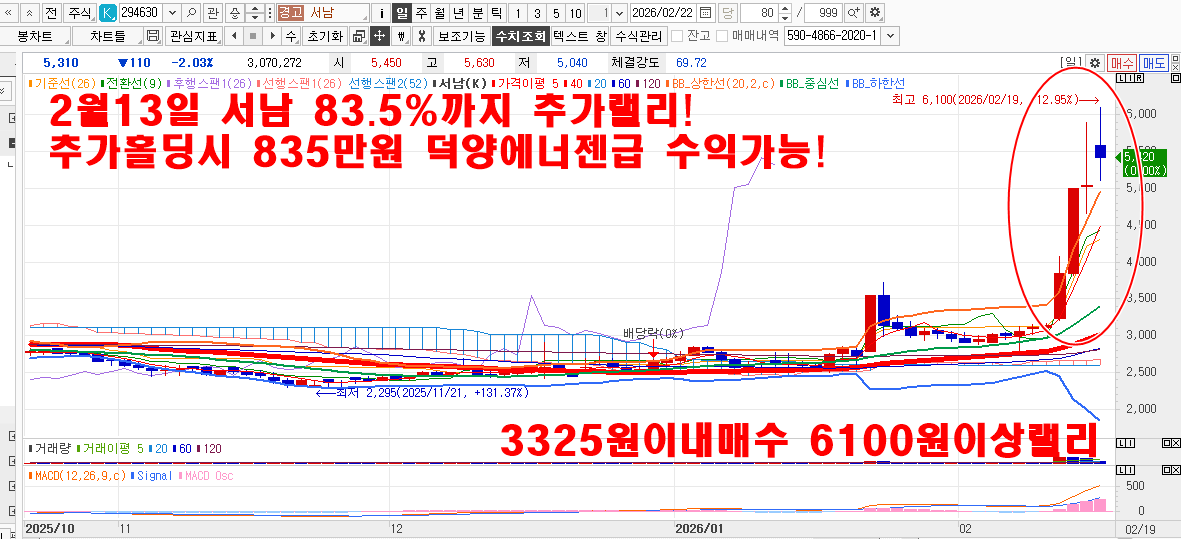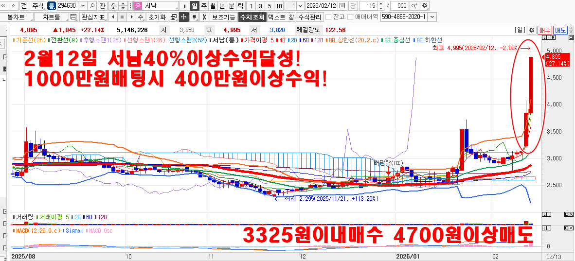 2월12일 서남40%이상 삼양바이오팜10~16.5%