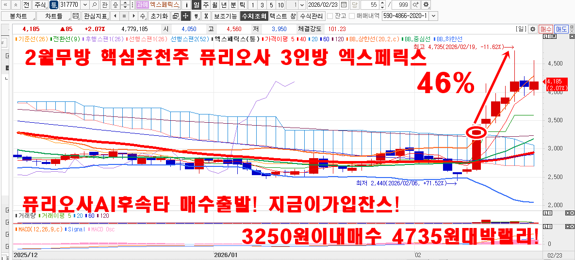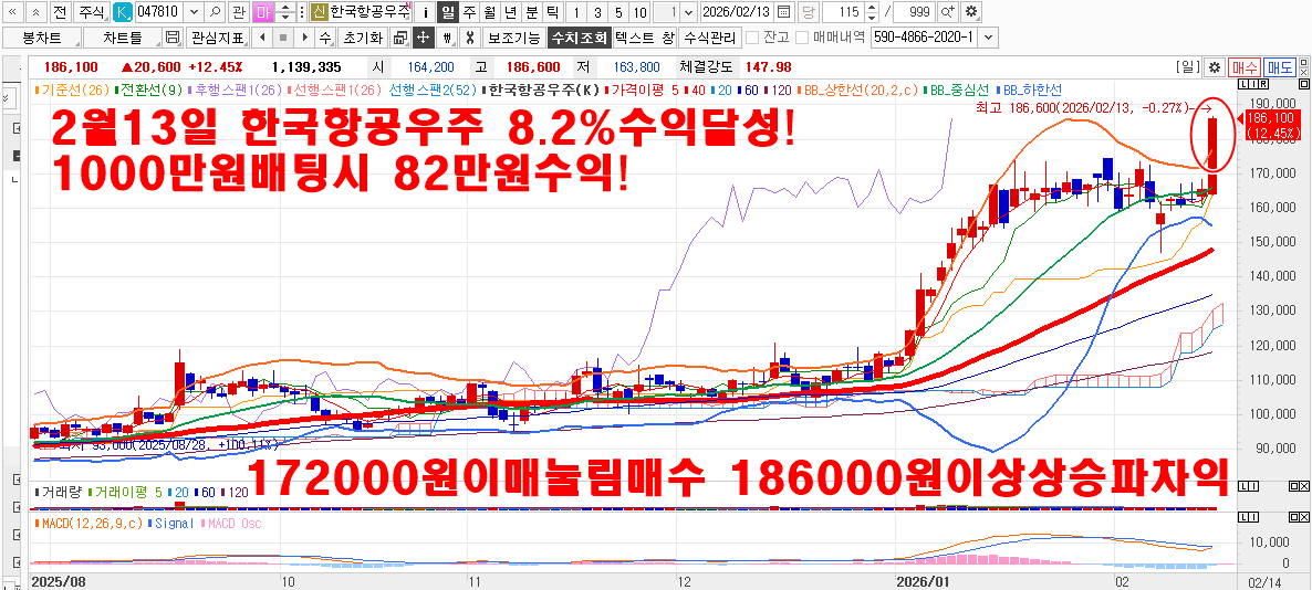 2월13일 큐리오시스25.4~39.6% 한국항공우주8.2%