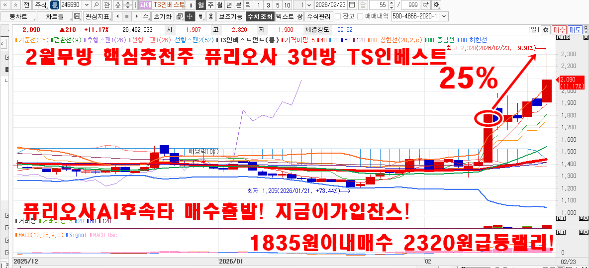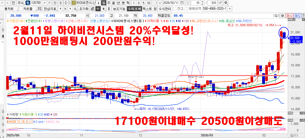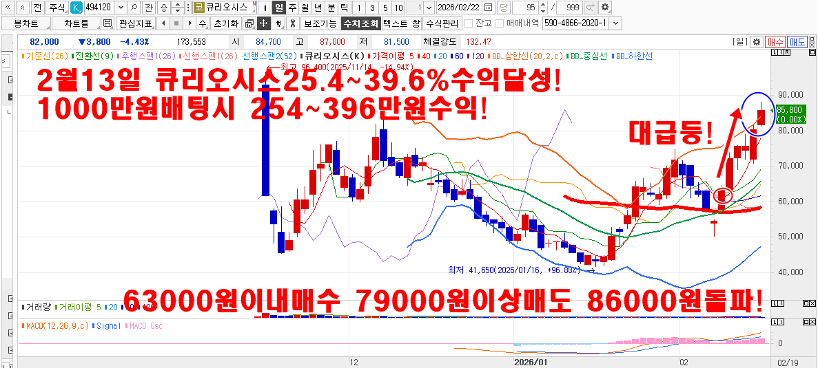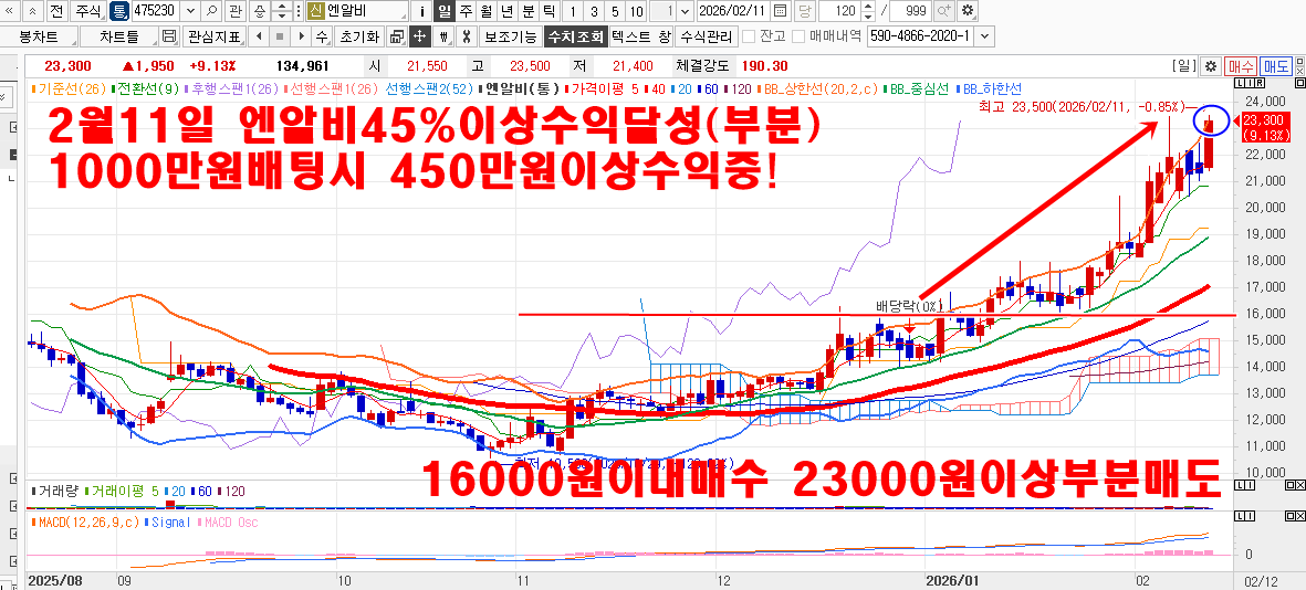 2월 김용덕클럽 715.8%수익달성중! 2월34주차 241.1%수익달성! 2월2주차 267.8%수익달성! 2월1주차 206.9%수익달성! 2월27일 두산에너빌리티22% 계양전기9.9% 2월26일 엔알비76% 2월24일 삼미금속10% 2월23일 삼미금속10%(부분) 2월20일 한국가스공사5.2% 2월19일 nhn42% 2월13일 큐리오시스25.4~39.6% 한국항공우주8.2% 2월12일 서남40% 삼양바이오팜10~16.5% 2월11일 비에이치15%이상 하이비젼20%이상 엔알비45%이상 2월11일 포바이포27.7% ts인베스트3.5~8.1% 엑스페릭스17~28%
