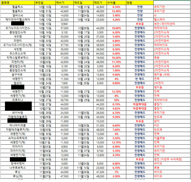 종목들은 매주 아쉬움없이 자율적으로 대응가능하도록 A/S 제공.
