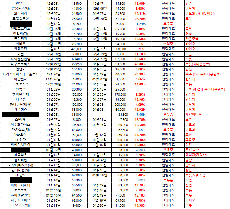 25년 10월~ 26년 1월 5째주 일당백 (문자반)정규 포트폴리오 수익+회전률 전체공개