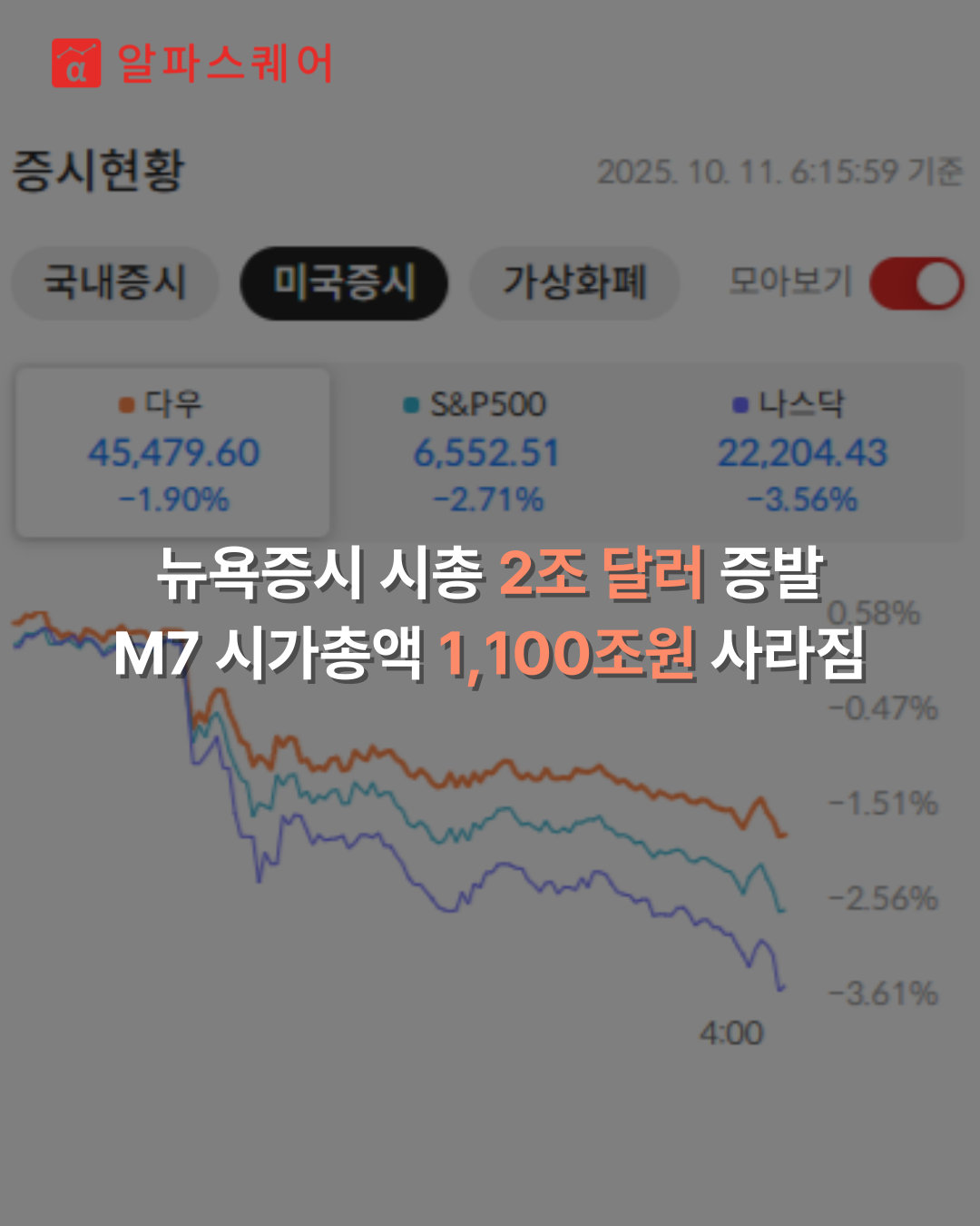 M7 빅테크 기업 시가총액 1100조원 사라짐