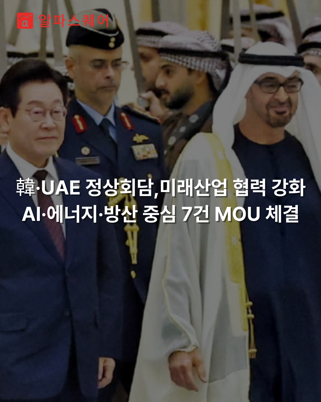 ■ 韓·UAE 정상회담, 미래산업 협력 강화 이재명 대통령·무함마드 대통령 회담 개최 AI·에너지·방산 중심 7건 MOU 체결